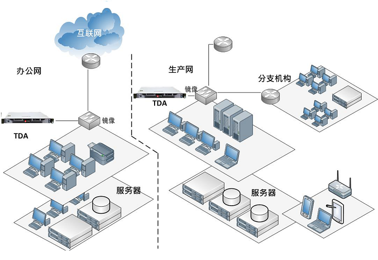 通過部署在各個(gè)匯聚交換機(jī)的威脅發(fā)現(xiàn)設(shè)備(Threat Discovery Appliance-簡稱TDA)分析采集網(wǎng)絡(luò)數(shù)據(jù)流量,通過監(jiān)測網(wǎng)絡(luò)層的可疑活動(dòng)定位惡意程序,威脅發(fā)現(xiàn)設(shè)備集成亞信安全“云安全”技術(shù),可全面支持檢測2-7層的惡意威脅,以識(shí)別和應(yīng)對(duì)下一代網(wǎng)絡(luò)威脅。這是傳統(tǒng)的、基于代碼比對(duì)方式的安全產(chǎn)品所無法辦到的。