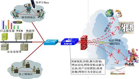 通過部署SINFOR AC上網(wǎng)行為管理設備: